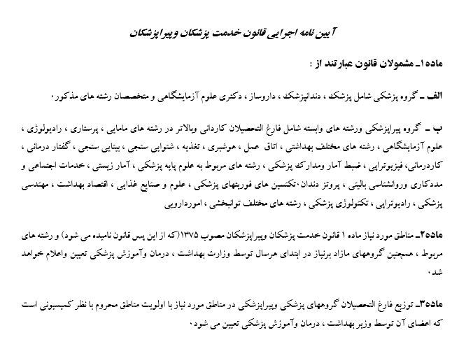 تمدید مدت طرح مشمولان قانون خدمت پزشکان و پیراپزشکان/ رشته های مازاد